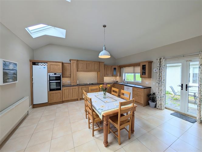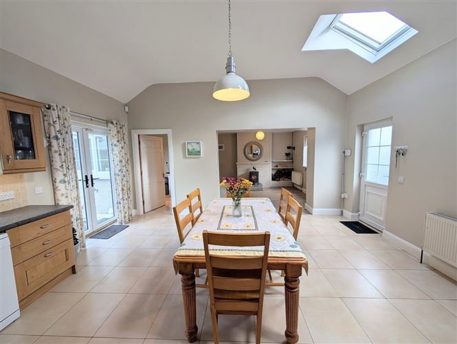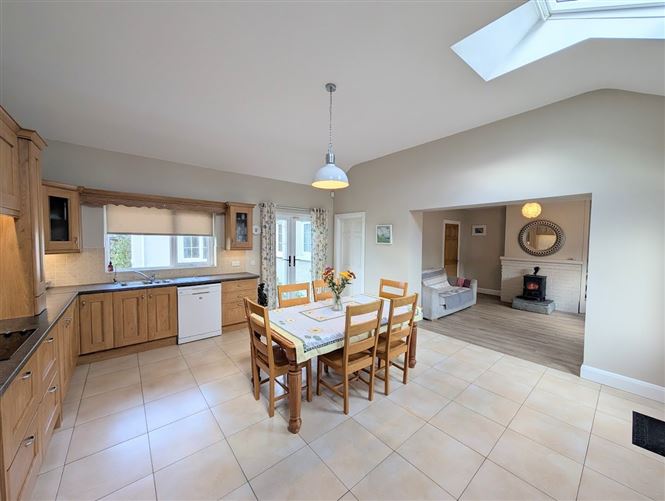 To the front of the property, there is a cosy sitting room, while the rear features an additional living room with a solid fuel stove, which opens into the kitchen/dining area, ideal for family living and entertaining.