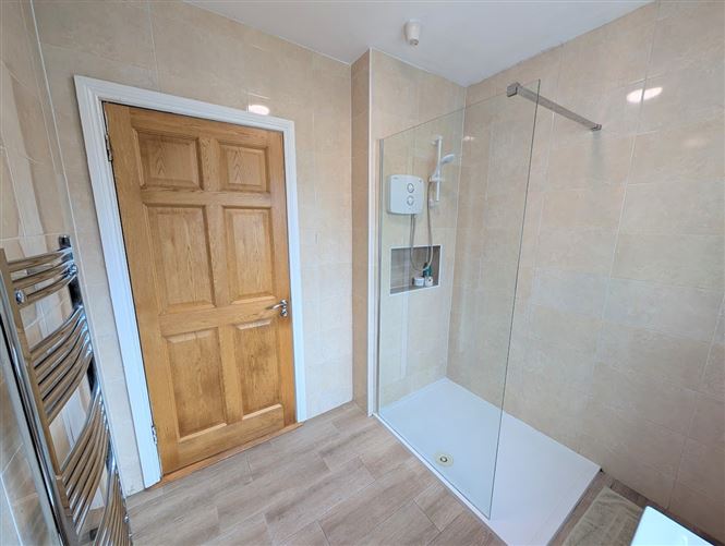 Walk in Shower, Heated Hand Rail Towel, Fully tiled.